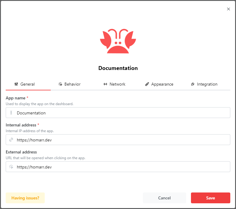 In Homarr, apps are the key concept. An app is a tile on your board that links to an application. Apps may have an integration to integrate with your favourite applications (see integrations).
